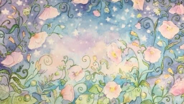 fairy, forest, green, flowers, pink, blue, purple